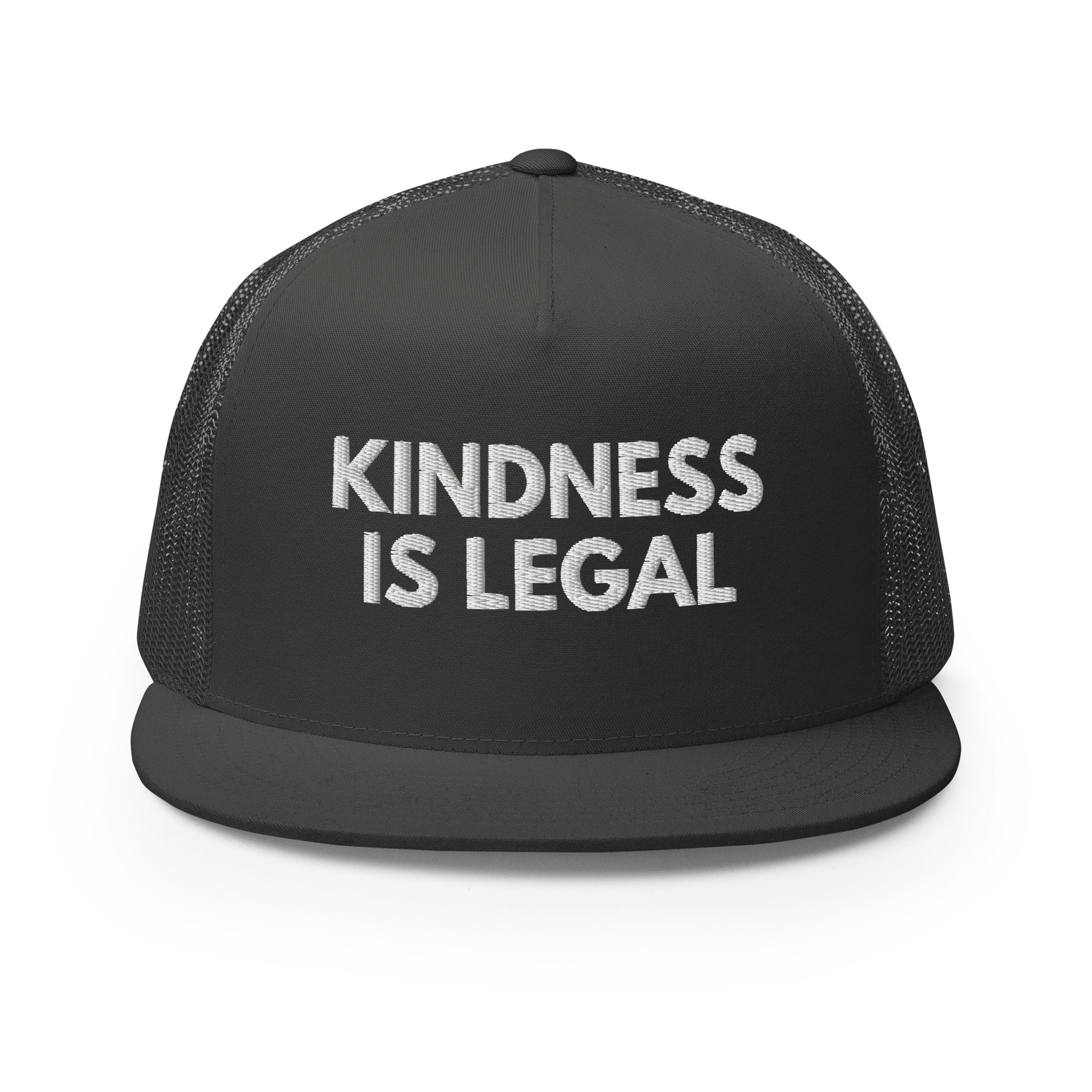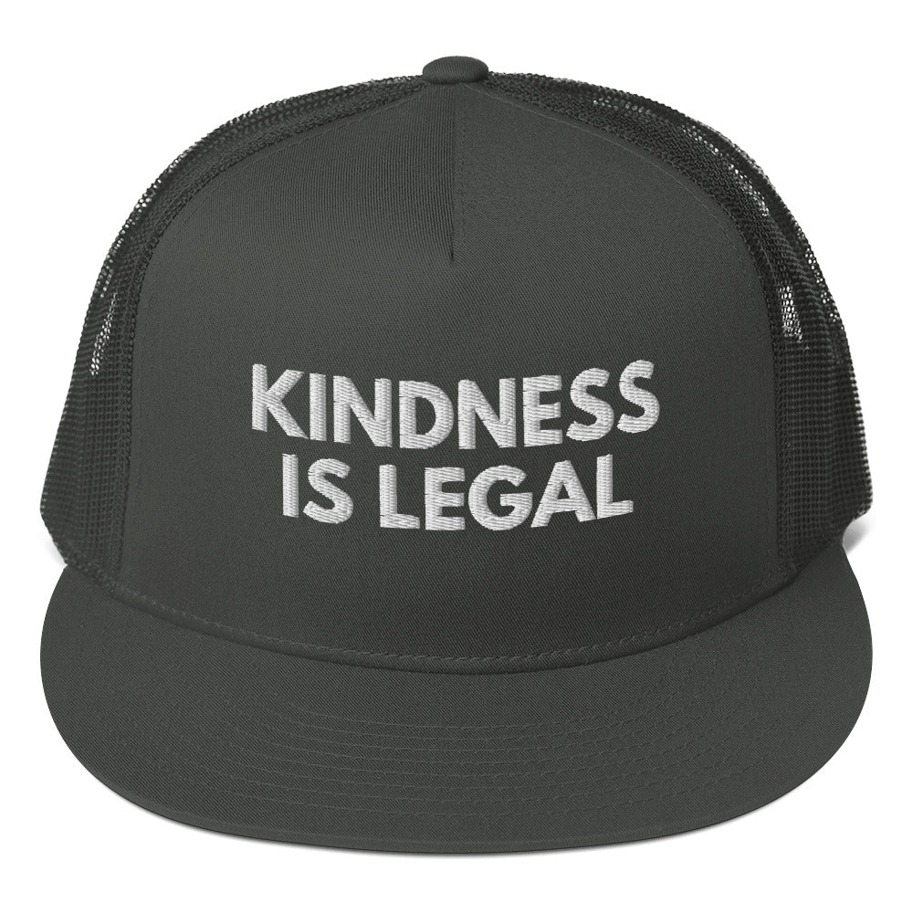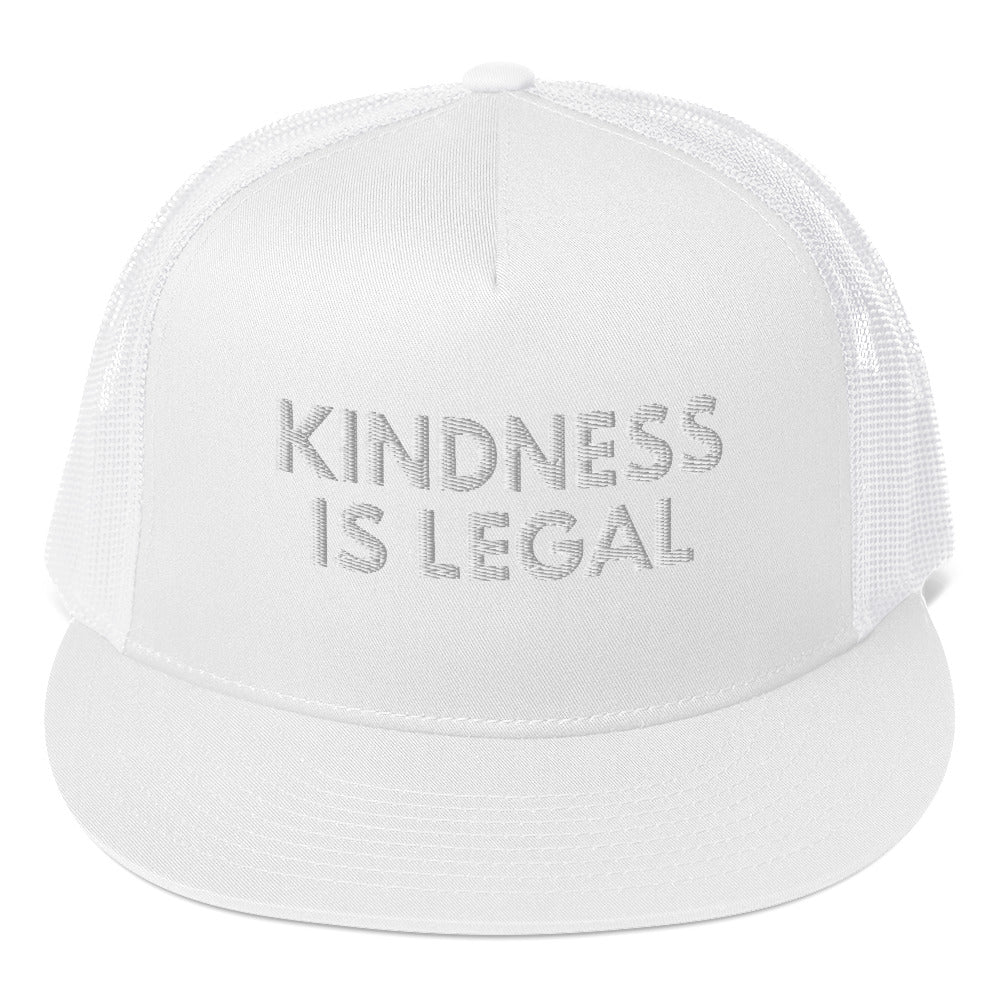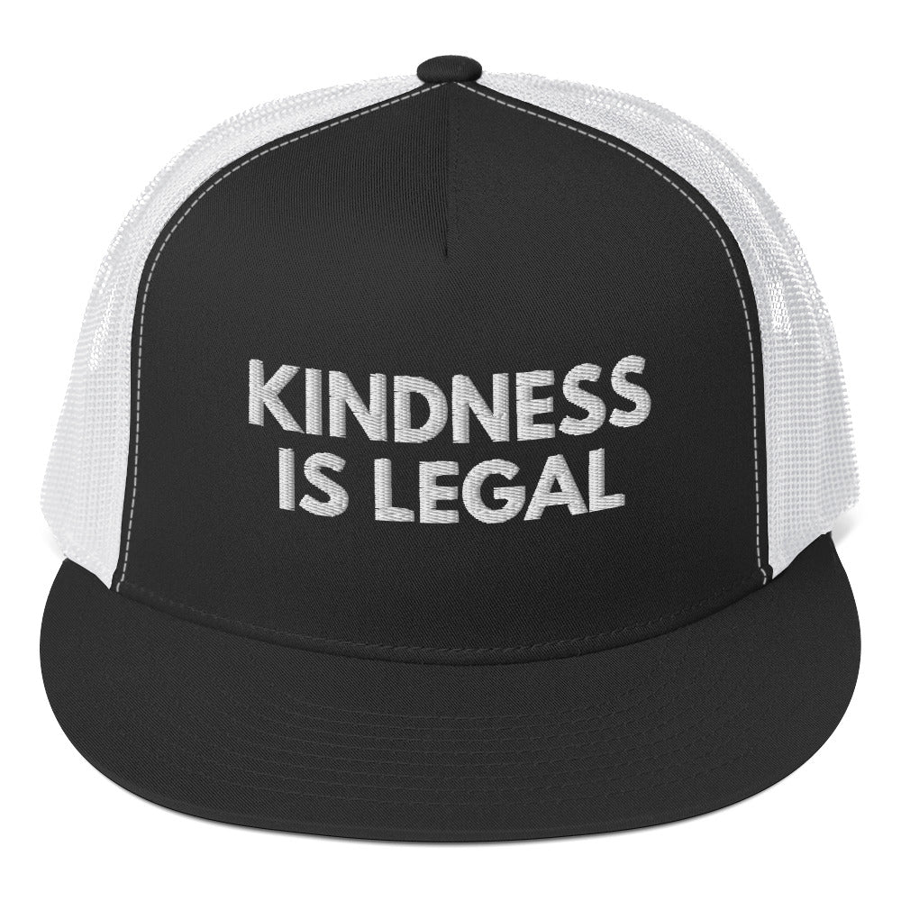Spread positivity and make a statement with our "Kindness is Legal" Trucker Hat. Crafted with care and designed for those who believe in the power of kindness, this hat features a bold yet simple embroidered message that resonates with hearts worldwide. With its classic trucker hat style and comfortable fit, it's the perfect accessory for everyday wear, reminding us all that kindness knows no bounds.