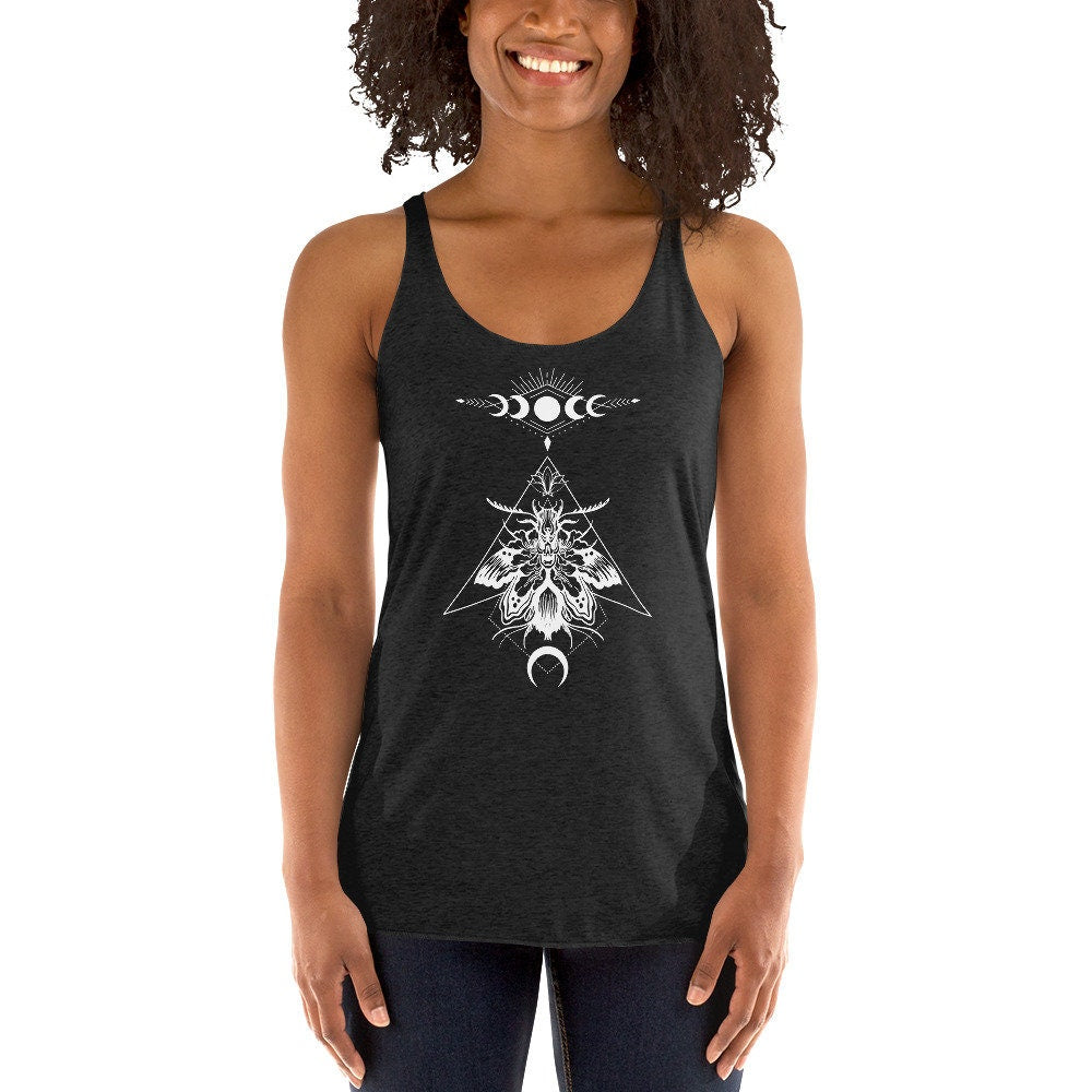 Bug Phish | Luna Moth Moon Magic | Women's Racerback Tank | Boho Moon phases | Luna Tank Top | Luna Moth