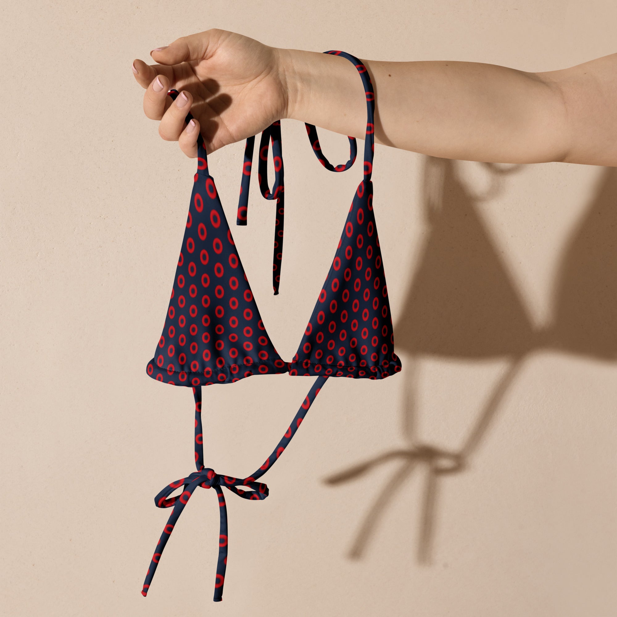 Disclaimer: To make your All-Over Print Recycled String Bikini Top last longer, thoroughly rinse it off after each use and get rid of any chlorine/salt residue.